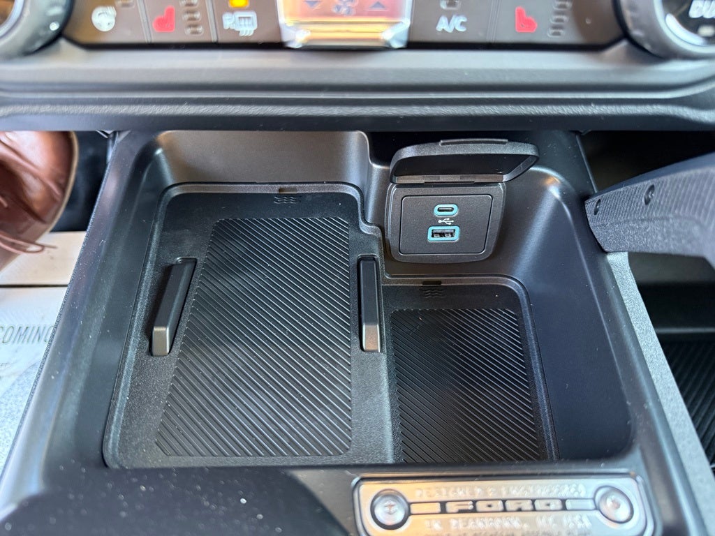 Black Appearance Package (Black Molded-In-Color Door Handles, Black Molded-In-Color Fender Flares, Black Molded-In-Color Sideview Mirror Caps, and Black-Painted Molded-In-Color Grille), Equipment Group 334A Lux Package (2-Door Intelligent Access w/Lock/Unlock, 360-Degree Camera, Adaptive Cruise Control, Ambient Footwell Lighting, Connected Navigation, Dr & Pass Illuminated Sliding Visor Vanity Mirrors, Dual Smart Charging USB Ports, Dual-Zone Electronic Automatic Temperature Control, Evasive Steering Assist, Front Parking Sensors, Front Row Heated Seats, Information on Demand Panel, Power Outlet - Back Side of Center Floor Console, Radio: B&O Sound System by Bang & Olufsen, Rear Parking Sensors, Sideview Mirrors, and Universal Garage Door Opener), 4-Wheel Disc Brakes, 4.7 Axle Ratio, 7 Speakers, ABS brakes, Air Conditioning, Alloy wheels, AM/FM radio: SiriusXM with 360L, AM/FM Stereo, Auto High-Beam Headlamps, Auto High-beam Headlights, Auto-dimming Rear-View mirror, BLIS Blind Spot Information System, Brake assist, Compass, Delay-off headlights, Door Storage Bags, Driver door bin, Driver vanity mirror, Dual front impact airbags, Dual front side impact airbags, Electronic Stability Control, Emergency communication system: 911 Assist, Exterior Parking Camera Rear, Ford Performance Heavy-Duty Modular Front Bumper, Front anti-roll bar, Front Bucket Seats, Front Center Armrest, Front fog lights, Front reading lights, Front wheel independent suspension, Fully automatic headlights, Hard Top Sound Deadening Headliner, Heated door mirrors, Heated front seats, Heated steering wheel, Illuminated entry, Integrated roll-over protection, Internet access capable: FordPass Connect, Lane-Keeping System, Leather Shift Knob, Low tire pressure warning, Marine Grade Vinyl Heated Bucket Seats, Occupant sensing airbag, Outside temperature display, Overhead airbag, Overhead console, Panic alarm, Passenger door bin, Passenger vanity mirror, Power door mirrors, Power steering, Power windows, Pre-Collision Assist w/Automatic Emergency Braking, Radio data system, Rear-View Camera, Rear-Window Defroster & Washer, Remote keyless entry, Security system, Shadow Black Painted Hard Top, SiriusXM w/360L, Speed control, Split folding rear seat, Steering wheel mounted audio controls, SYNC 4, Tachometer, Telescoping steering wheel, Tilt steering wheel, Traction control, Trip computer, Variably intermittent wipers, Voltmeter, and Wheels: 17 Carbonized Gray-Painted Aluminum.