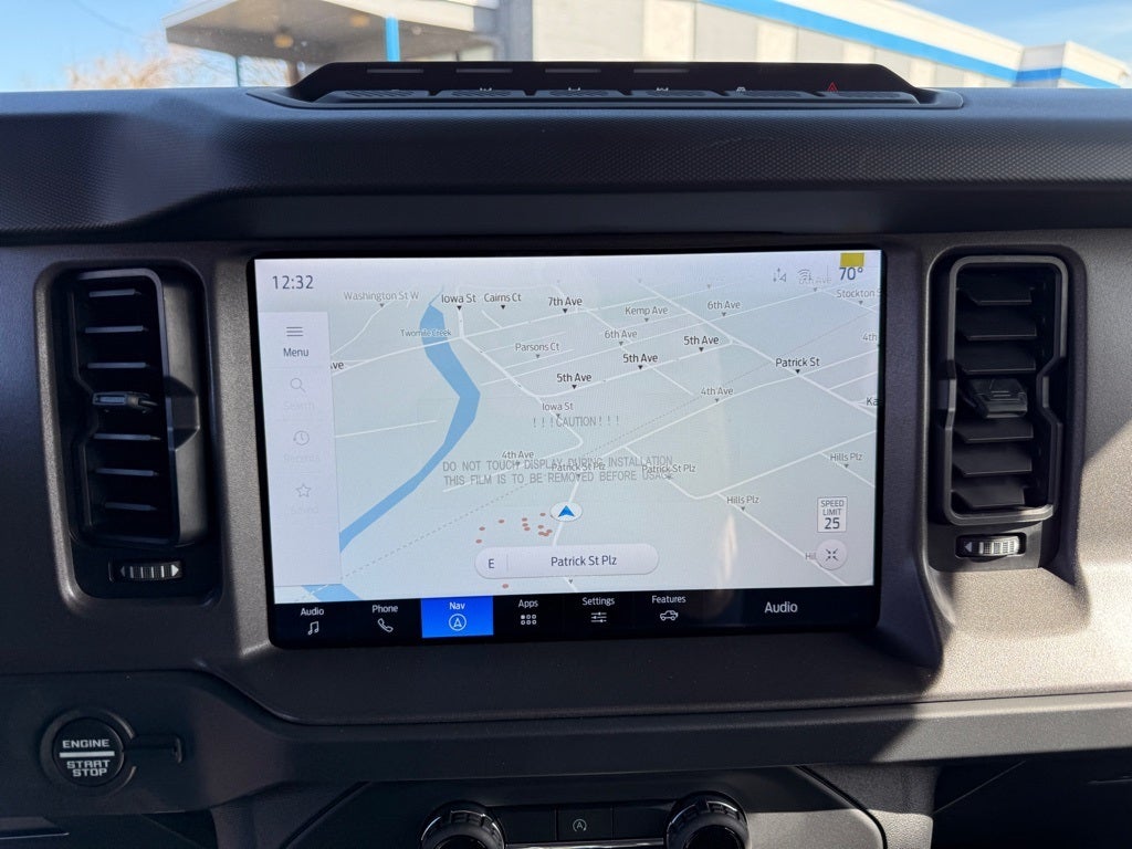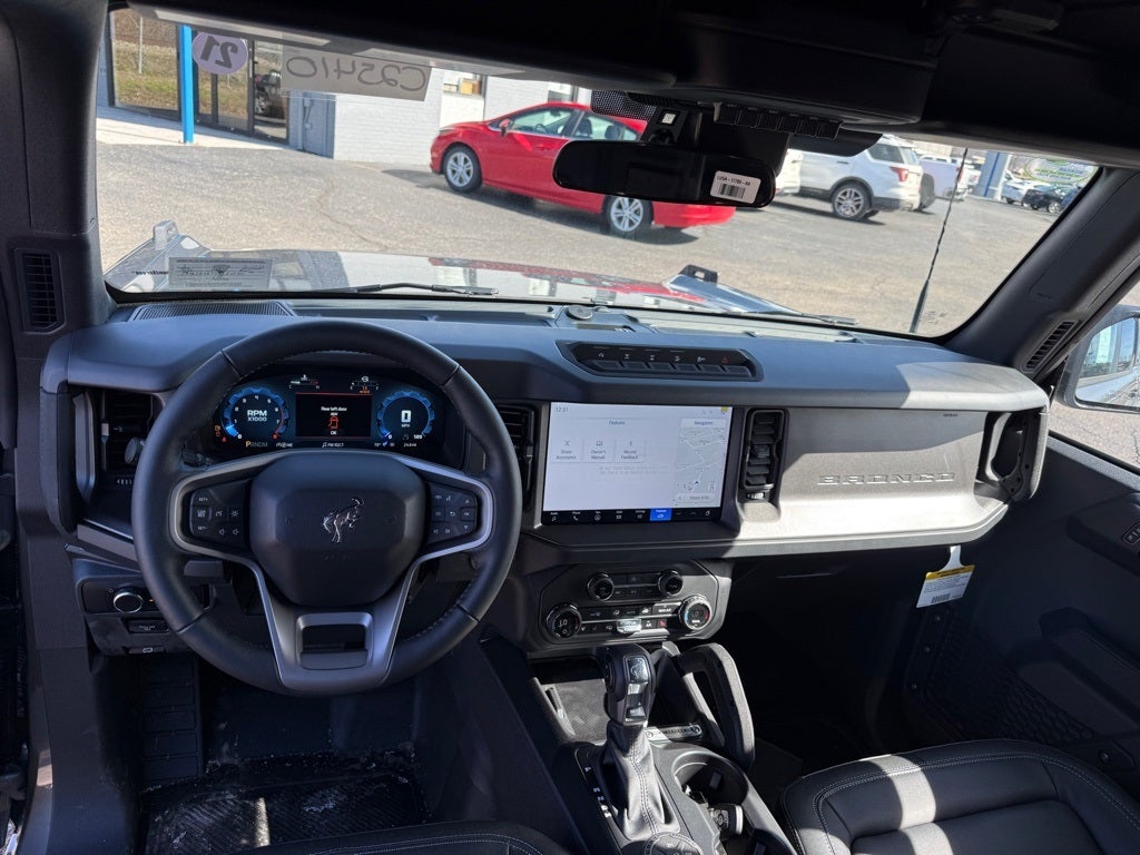 Equipment Group 332A Mid Package (2-Door Intelligent Access w/Lock/Unlock, Ambient Footwell Lighting, Connected Navigation, Dr & Pass Illuminated Sliding Visor Vanity Mirrors, Dual Smart Charging USB Ports, Dual-Zone Electronic Automatic Temperature Control, Front Row Heated Seats, Power Outlet - Back Side of Center Floor Console, and Rear Parking Sensors), 4-Wheel Disc Brakes, 4.7 Axle Ratio, 7 Speakers, ABS brakes, Air Conditioning, Alloy wheels, AM/FM radio: SiriusXM with 360L, AM/FM Stereo, Auto High-Beam Headlamps, Auto High-beam Headlights, Auto-dimming Rear-View mirror, BLIS Blind Spot Information System, Brake assist, Carbonized Gray Molded-In-Color Hard Top, Compass, Delay-off headlights, Driver door bin, Driver vanity mirror, Dual front impact airbags, Dual front side impact airbags, Electronic Stability Control, Emergency communication system: 911 Assist, Exterior Parking Camera Rear, Ford Performance Heavy-Duty Modular Front Bumper, Front anti-roll bar, Front Bucket Seats, Front Center Armrest, Front fog lights, Front reading lights, Front wheel independent suspension, Fully automatic headlights, Hard Top Sound Deadening Headliner, Heated door mirrors, Heated front seats, Heated steering wheel, Illuminated entry, Integrated roll-over protection, Internet access capable: FordPass Connect, Lane-Keeping System, Leather Shift Knob, Low tire pressure warning, Marine Grade Vinyl Heated Bucket Seats, Occupant sensing airbag, Outside temperature display, Overhead airbag, Overhead console, Panic alarm, Passenger door bin, Passenger vanity mirror, Power door mirrors, Power steering, Power windows, Pre-Collision Assist w/Automatic Emergency Braking, Radio data system, Rear-View Camera, Rear-Window Defroster & Washer, Remote keyless entry, Security system, SiriusXM w/360L, Speed control, Split folding rear seat, Steering wheel mounted audio controls, SYNC 4, Tachometer, Telescoping steering wheel, Tilt steering wheel, Traction control, Trip computer, Variably intermittent wipers, Voltmeter, and Wheels: 17 Carbonized Gray-Painted Aluminum.
