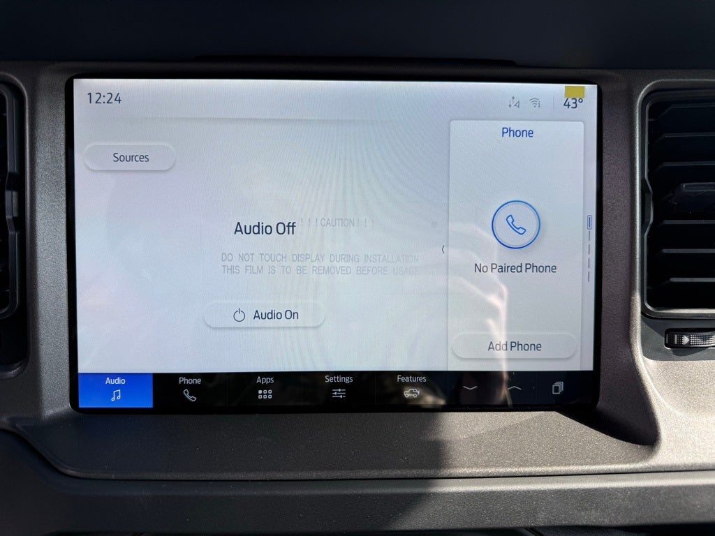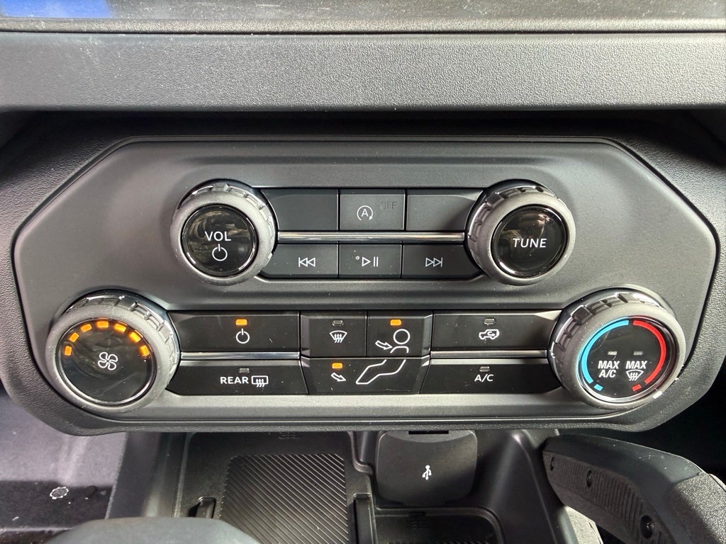 Equipment Group 331A Standard Package, 4-Wheel Disc Brakes, 4.7 Axle Ratio, 7 Speakers, ABS brakes, Air Conditioning, Alloy wheels, AM/FM radio: SiriusXM with 360L, AM/FM Stereo, Auto High-beam Headlights, Auto-dimming Rear-View mirror, Brake assist, Carbonized Gray Molded-In-Color Hard Top, Compass, Delay-off headlights, Door Storage Bags, Driver door bin, Driver vanity mirror, Dual front impact airbags, Dual front side impact airbags, Electronic Stability Control, Emergency communication system: 911 Assist, Exterior Parking Camera Rear, Ford Performance Heavy-Duty Modular Front Bumper, Front anti-roll bar, Front Bucket Seats, Front Center Armrest, Front fog lights, Front reading lights, Front wheel independent suspension, Fully automatic headlights, Heated door mirrors, Heated front seats, Heated steering wheel, Illuminated entry, Integrated roll-over protection, Internet access capable: FordPass Connect, Leather Shift Knob, Low tire pressure warning, Marine Grade Vinyl Heated Bucket Seats, Occupant sensing airbag, Outside temperature display, Overhead airbag, Overhead console, Panic alarm, Passenger door bin, Passenger vanity mirror, Power door mirrors, Power steering, Power windows, Radio data system, Rear-Window Defroster & Washer, Remote keyless entry, Security system, SiriusXM w/360L, Speed control, Split folding rear seat, Steering wheel mounted audio controls, SYNC 4, Tachometer, Telescoping steering wheel, Tilt steering wheel, Traction control, Trip computer, Variably intermittent wipers, Voltmeter, and Wheels: 17 Carbonized Gray-Painted Aluminum.