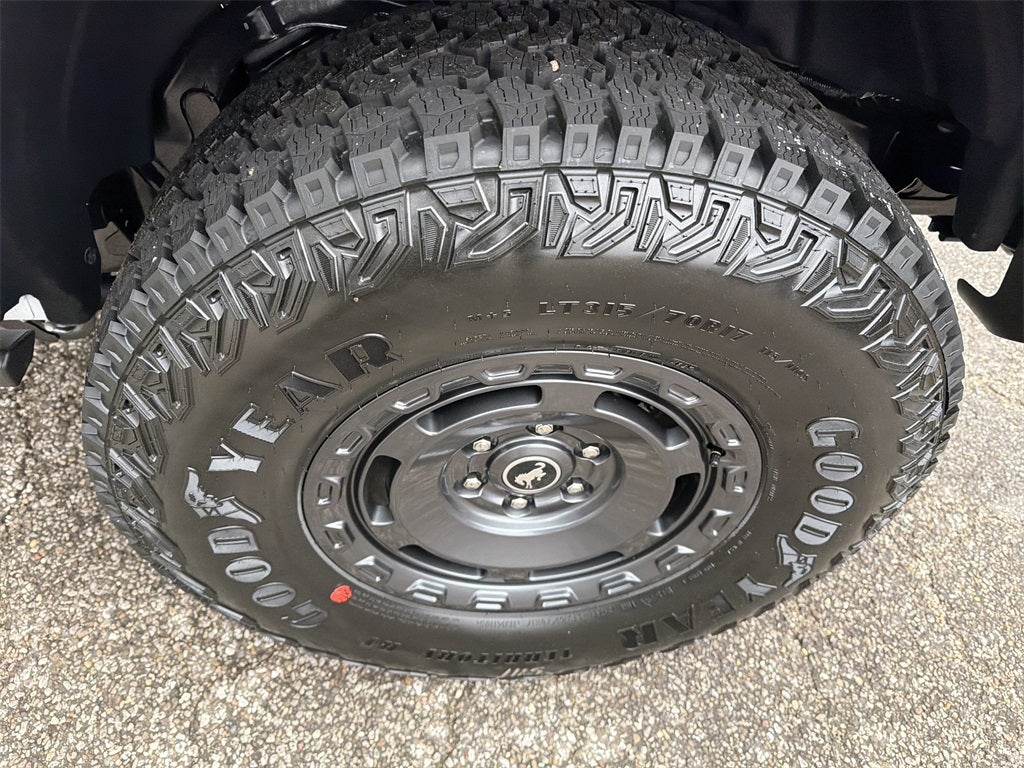 Equipment Group 334A Lux Package (2-Door Intelligent Access w/Lock/Unlock, 360-Degree Camera, Adaptive Cruise Control, Ambient Footwell Lighting, Connected Navigation, Dr & Pass Illuminated Sliding Visor Vanity Mirrors, Dual Smart Charging USB Ports, Dual-Zone Electronic Automatic Temperature Control, Evasive Steering Assist, Front Parking Sensors, Front Row Heated Seats, Information on Demand Panel, Power Outlet - Back Side of Center Floor Console, Radio: B&O Sound System by Bang & Olufsen, Rear Parking Sensors, Sideview Mirrors, and Universal Garage Door Opener), Sasquatch Graphics Package, Sasquatch Package (High Clearance Fender Flares, High Clearance Suspension, Position-Sensitive Bilstein Shock Absorbers, and Wheels: 17 Carbonized Gray Painted Aluminum), 4-Wheel Disc Brakes, 7 Speakers, ABS brakes, Air Conditioning, Alloy wheels, AM/FM radio: SiriusXM with 360L, AM/FM Stereo, Auto High-Beam Headlamps, Auto High-beam Headlights, Auto-dimming Rear-View mirror, BLIS Blind Spot Information System, Brake assist, Compass, Delay-off headlights, Door Storage Bags, Driver door bin, Driver vanity mirror, Dual front impact airbags, Dual front side impact airbags, Electronic Stability Control, Emergency communication system: 911 Assist, Exterior Parking Camera Rear, Ford Performance Heavy-Duty Modular Front Bumper, Front anti-roll bar, Front Bucket Seats, Front Center Armrest, Front fog lights, Front reading lights, Front wheel independent suspension, Fully automatic headlights, Hard Top Sound Deadening Headliner, Heated door mirrors, Heated front seats, Heated steering wheel, Illuminated entry, Integrated roll-over protection, Internet access capable: FordPass Connect, Lane-Keeping System, Leather Shift Knob, Low tire pressure warning, Marine Grade Vinyl Heated Bucket Seats, Occupant sensing airbag, Outside temperature display, Overhead airbag, Overhead console, Panic alarm, Passenger door bin, Passenger vanity mirror, Power door mirrors, Power steering, Power windows, Pre-Collision Assist w/Automatic Emergency Braking, Radio data system, Rear-View Camera, Rear-Window Defroster & Washer, Remote keyless entry, Security system, Shadow Black Painted Hard Top, SiriusXM w/360L, Speed control, Split folding rear seat, Steering wheel mounted audio controls, SYNC 4, Tachometer, Telescoping steering wheel, Tilt steering wheel, Traction control, Trip computer, Upgraded Carpet Floor Mats, Variably intermittent wipers, Voltmeter, and Wheels: 17 Carbonized Gray-Painted Aluminum.