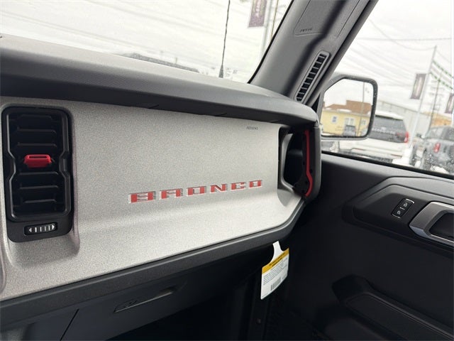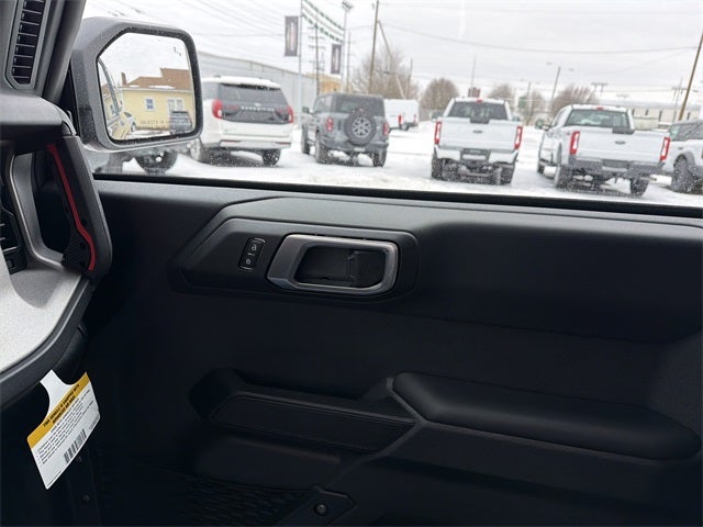 Equipment Group 222A Mid Package (2-Door Intelligent Access w/Lock/Unlock, Ambient Footwell Lighting, Connected Navigation, Dr & Pass Illuminated Sliding Visor Vanity Mirrors, Dual Smart Charging USB Ports, Dual-Zone Electronic Automatic Temperature Control, Front Row Heated Seats, Power Outlet - Back Side of Center Floor Console, and Rear Parking Sensors), Free Wheeling Package (Front & Rear Floor Liners, Iconic Silver-Painted Grille, Marine Grade Vinyl/Cloth Bucket Seats, and Painted Door Handles), 4-Wheel Disc Brakes, 4.46 Axle Ratio, 7 Speakers, ABS brakes, Air Conditioning, Alloy wheels, AM/FM radio: SiriusXM with 360L, AM/FM Stereo, Auto High-Beam Headlamps, Auto High-beam Headlights, Backup Camera, BLIS Blind Spot Information System, Brake assist, Carbonized Gray Molded-In-Color Hard Top, Cloth Bucket Seats, Compass, Delay-off headlights, Driver door bin, Driver vanity mirror, Dual front impact airbags, Dual front side impact airbags, Electronic Stability Control, Emergency communication system: 911 Assist, Front anti-roll bar, Front Bucket Seats, Front Center Armrest, Front reading lights, Front wheel independent suspension, Fully automatic headlights, Hard Top Sound Deadening Headliner, Heated door mirrors, Illuminated entry, Integrated roll-over protection, Internet access capable: FordPass Connect, Keyless Entry, Lane-Keeping System, Leather Shift Knob, Low tire pressure warning, Occupant sensing airbag, Outside temperature display, Overhead airbag, Overhead console, Panic alarm, Passenger door bin, Passenger vanity mirror, Power door mirrors, Power steering, Power windows, Pre-Collision Assist w/Automatic Emergency Braking, Radio data system, Rear-View Camera, Rear-Window Defroster & Washer, Security system, Side Step, SiriusXM w/360L, Speed control, Split folding rear seat, Steering wheel mounted audio controls, SYNC 4, Tachometer, Telescoping steering wheel, Tilt steering wheel, Traction control, Trip computer, Variably intermittent wipers, and Wheels: 17 Carbonized Gray-Painted Aluminum. Price includes: $2500 - Retail Customer Cash. Exp. 03/31/2026