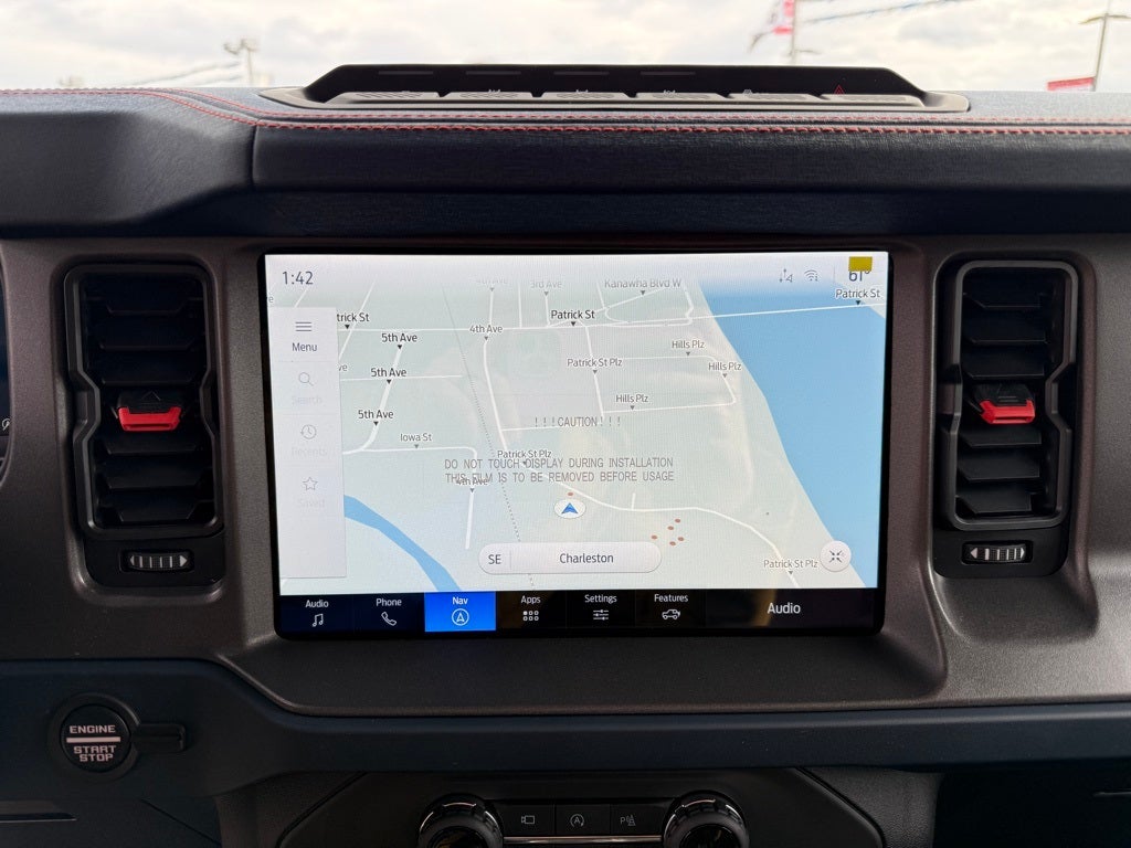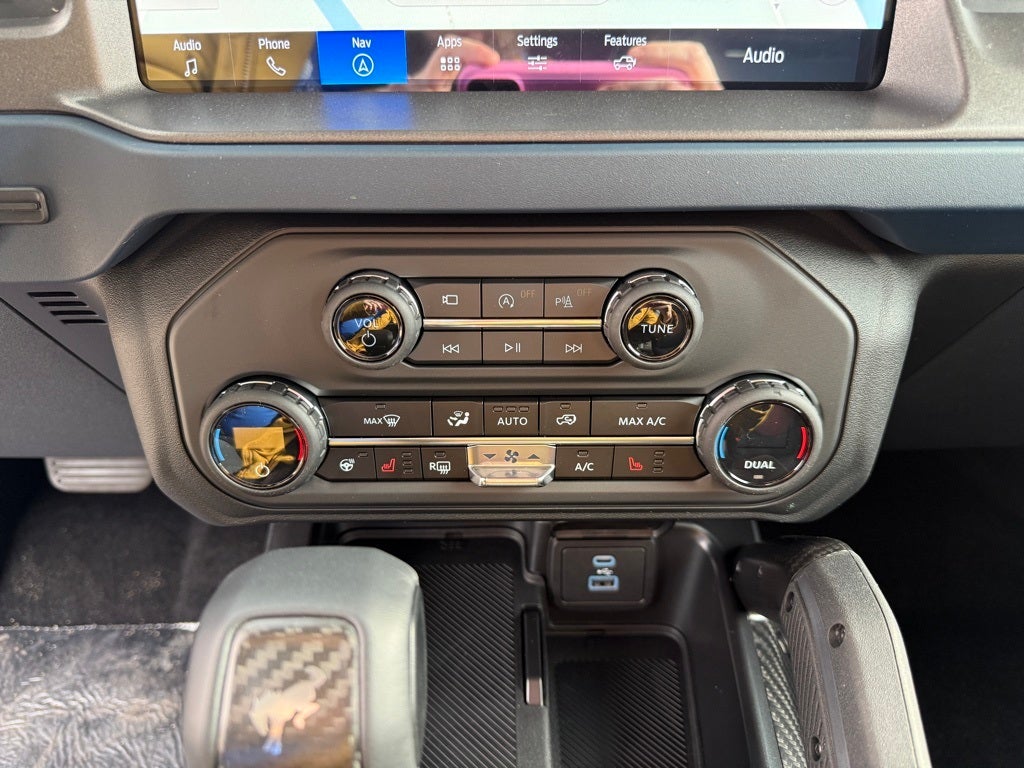 Equipment Group 374A Lux Package, Raptor Code Orange Appearance Package (Body-Color Painted Sideview Mirror Caps, Code Orange Accent Seat Belts, Interior Carbon Fiber Pack, and Wheels: 17 Dark Carbonized Gray Alloy Painted), 12 Speakers, 4-Wheel Disc Brakes, ABS brakes, Air Conditioning, Alloy wheels, AM/FM radio: SiriusXM with 360L, Auto High-beam Headlights, Auto-dimming Rear-View mirror, Automatic temperature control, Body Color-Painted Hard Top, Brake assist, Compass, Connected Navigation, Convertible HardTop, Convertible roof lining, Delay-off headlights, Driver door bin, Driver vanity mirror, Dual front impact airbags, Dual front side impact airbags, Electronic Stability Control, Emergency communication system: 911 Assist, Exterior Parking Camera Rear, Front anti-roll bar, Front Bucket Seats, Front Center Armrest, Front dual zone A/C, Front fog lights, Front reading lights, Front wheel independent suspension, Full Display Rearview Mirror, Fully automatic headlights, Garage door transmitter, Glass rear window, Hard Top Sound Deadening Headliner, Heated door mirrors, Heated front seats, Heated steering wheel, Illuminated entry, Integrated roll-over protection, Internet access capable: FordPass Connect, Leather Shift Knob, Low tire pressure warning, Marine Grade Vinyl Bucket Seats, Navigation system: Connected Navigation, Occupant sensing airbag, Outside temperature display, Overhead airbag, Overhead console, Panic alarm, Passenger door bin, Passenger vanity mirror, Power door mirrors, Power steering, Power windows, Radio data system, Radio: B&O Sound System by Bang & Olufsen, Rear anti-roll bar, Rear seat center armrest, Rear window defroster, Rear window wiper, Rear-Window Defroster & Washer, Remote keyless entry, Security system, SiriusXM w/360L, Speed control, Split folding rear seat, Steering wheel mounted audio controls, SYNC 4, Tachometer, Telescoping steering wheel, Tilt steering wheel, Traction control, Trip computer, Turn signal indicator mirrors, Variably intermittent wipers, Voltmeter, and Wheels: 17 Black High Gloss-Painted Aluminum.