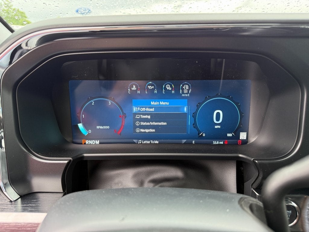 Black Appearance Package (6 Ebony Black Angular Running Boards, Black Painted Front Grille Surround, and Ebony Black Painted Mirror Caps), Lariat Ultimate Package (4-Way Adjustable Headrests, Head-Up Display, Power-Deployable Running Boards, Privacy Glass, Pro Trailer Backup Assist, Pro Trailer Hitch Assist, and Radio: B&O Unleashed Sound System by Bang & Olufsen), Order Code 618A (Flow-Through Console and Front ActiveX Trimmed 40/Console/40 Seats), Snow Plow Prep Package, 190 Amp Alternator, 4-Wheel Disc Brakes, 410 Amp Dual Alternators, 8 Speakers, ABS brakes, Adjustable pedals, Air Conditioning, All-Weather Floor Mats, Alloy wheels, AM/FM radio: SiriusXM with 360L, Auto High-beam Headlights, Auto-dimming Rear-View mirror, Automatic High Beam, Automatic temperature control, Brake assist, Bumpers: chrome, Compass, Delay-off headlights, Driver door bin, Driver vanity mirror, Dual AGM 68 AH Battery, Dual front impact airbags, Dual front side impact airbags, Electronic Stability Control, Emergency communication system: SYNC 4 911 Assist, Engine Block Heater, Front anti-roll bar, Front Bucket Seats, Front Center Armrest, Front dual zone A/C, Front fog lights, Front License Plate Bracket, Front reading lights, Fully automatic headlights, Garage door transmitter, Heated door mirrors, Heated front seats, Heated rear seats, Heated steering wheel, Illuminated entry, Lane-Keeping System, Low tire pressure warning, Memory seat, Navigation System, Outside temperature display, Overhead airbag, Overhead console, Panic alarm, Passenger door bin, Passenger vanity mirror, Pedal memory, Post-Collision Braking, Power door mirrors, Power driver seat, Power passenger seat, Power steering, Power windows, Pre-Collision Assist, Rain sensing wipers, Rear Parking Sensors, Rear reading lights, Rear seat center armrest, Rear step bumper, Rear window defroster, Remote keyless entry, Security system, Speed control, Split folding rear seat, Steering wheel mounted audio controls, Tachometer, Telescoping steering wheel, Tilt steering wheel, Traction control, Trip computer, Turn signal indicator mirrors, Upfitter Switches (6), Variably intermittent wipers, and Ventilated front seats.