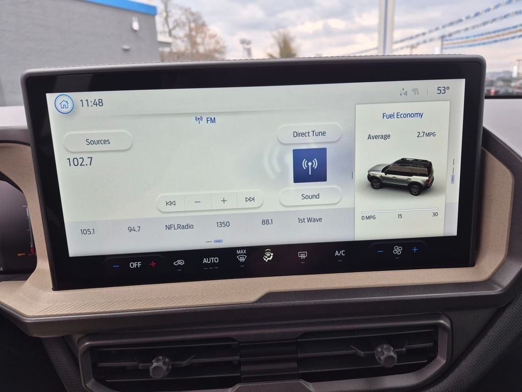 Ford Connectivity Package (1-Year Included), Internet access capable: 5G Modem - Ford Connectivity Package, 4-Wheel Disc Brakes, 6 Speakers, ABS brakes, Air Conditioning, Alloy wheels, AM/FM radio: SiriusXM with 360L, AM/FM Stereo, Apple CarPlay/Android Auto, Auto High-beam Headlights, Automatic temperature control, Brake assist, Cloth with Easy-to-Clean Front Bucket Seats, Compass, Delay-off headlights, Driver door bin, Driver vanity mirror, Dual front impact airbags, Dual front side impact airbags, Electronic Stability Control, Emergency communication system: SYNC 4 911 Assist, Exterior Parking Camera Rear, Four wheel independent suspension, Front anti-roll bar, Front Bucket Seats, Front Center Armrest, Front reading lights, Fully automatic headlights, Heated door mirrors, Illuminated entry, Knee airbag, Low tire pressure warning, Occupant sensing airbag, Outside temperature display, Overhead airbag, Overhead console, Panic alarm, Passenger door bin, Passenger vanity mirror, Power door mirrors, Power steering, Power windows, Radio data system, Rear anti-roll bar, Rear Parking Sensors, Rear reading lights, Rear seat center armrest, Rear window defroster, Rear window wiper, Remote keyless entry, Security system, SiriusXM with 360L, Speed control, Speed-sensing steering, Speed-Sensitive Wipers, Split folding rear seat, Steering wheel mounted audio controls, SYNC 4 with Enhanced Voice Recognition, Tachometer, Telescoping steering wheel, Tilt steering wheel, Traction control, Trip computer, Variably intermittent wipers, Wheels: 17 Carbonized Gray Painted Aluminum, and Wheels: 17 Carbonized Gray-Painted Aluminum. 25/30 City/Highway MPG
