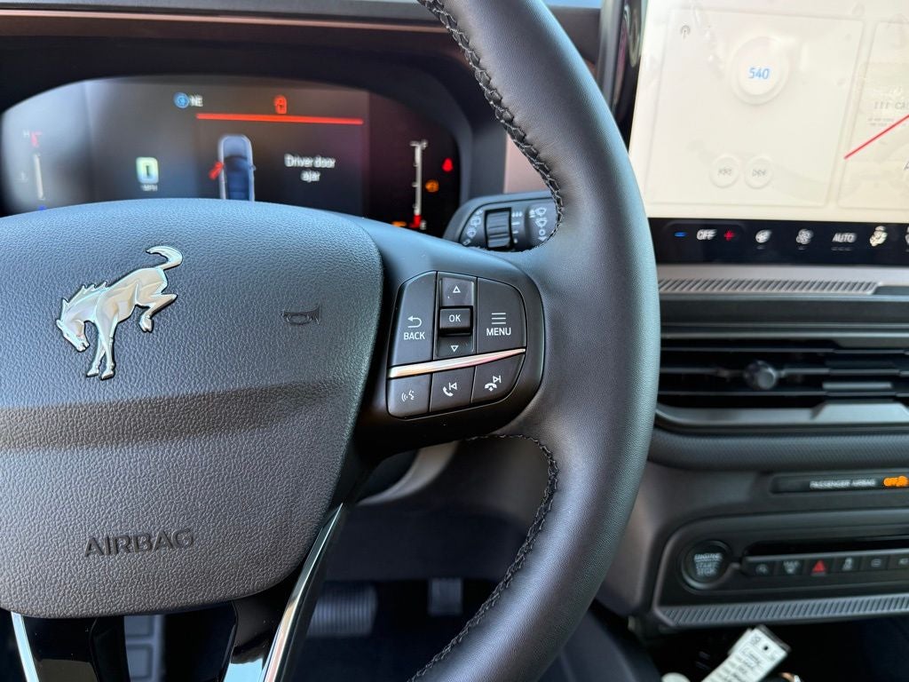 Ford Connectivity Package (1-Year Included), Internet access capable: 5G Modem - Ford Connectivity Package, 2nd Row Carpeted Seatback, 4-Wheel Disc Brakes, 6 Speakers, ABS brakes, Air Conditioning, Alloy wheels, AM/FM radio: SiriusXM with 360L, AM/FM Stereo, Apple CarPlay/Android Auto, Auto High-beam Headlights, Auto-dimming Rear-View mirror, Automatic temperature control, Brake assist, Compass, Delay-off headlights, Driver door bin, Driver vanity mirror, Dual front impact airbags, Dual front side impact airbags, Electronic Stability Control, Emergency communication system: SYNC 4 911 Assist, Exterior Parking Camera Rear, Four wheel independent suspension, Front anti-roll bar, Front Bucket Seats, Front Center Armrest, Front Driver/Passenger Seat Back Map Pockets, Front dual zone A/C, Front fog lights, Front reading lights, Fully automatic headlights, Heated door mirrors, Heated front seats, Heated steering wheel, Illuminated entry, Knee airbag, Low tire pressure warning, Memory seat, Occupant sensing airbag, Outside temperature display, Overhead airbag, Overhead console, Panic alarm, Passenger door bin, Passenger vanity mirror, Power door mirrors, Power driver seat, Power passenger seat, Power steering, Power windows, Radio data system, Rear anti-roll bar, Rear Parking Sensors, Rear reading lights, Rear seat center armrest, Rear window defroster, Rear window wiper, Remote keyless entry, Security system, SiriusXM with 360L, Speed control, Speed-sensing steering, Speed-Sensitive Wipers, Split folding rear seat, Steering wheel mounted audio controls, SYNC 4 with Enhanced Voice Recognition, Tachometer, Telescoping steering wheel, Tilt steering wheel, Traction control, Trip computer, Variably intermittent wipers, and Wheels: 18 Ebony Black. 25/30 City/Highway MPG