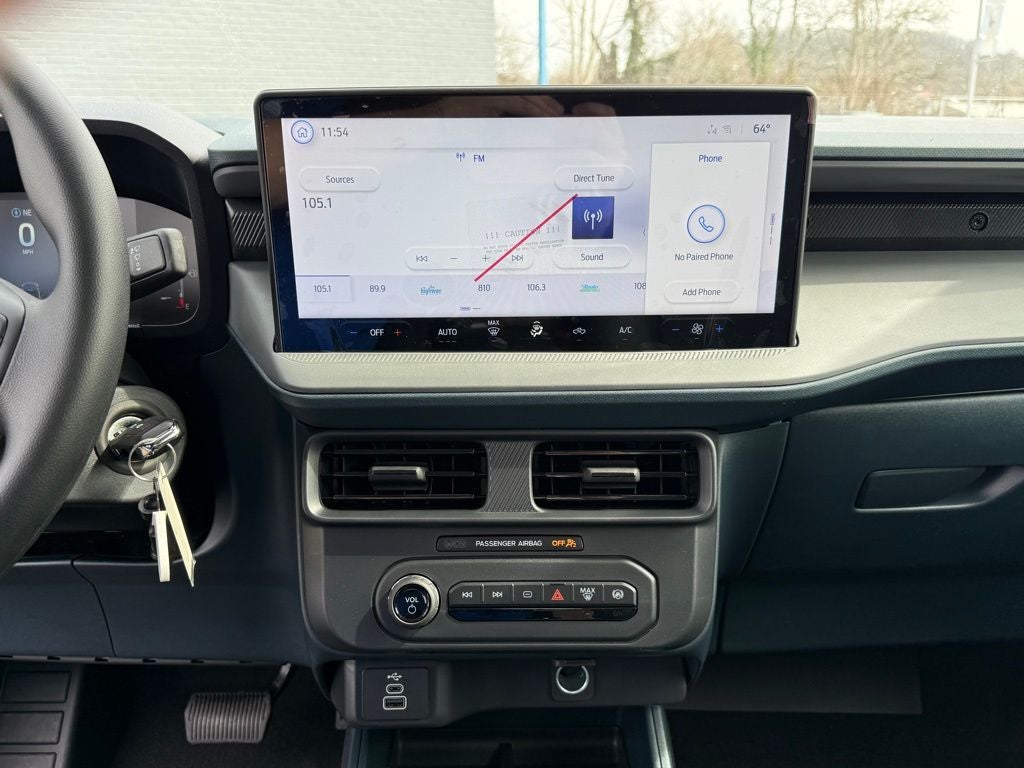 Equipment Group 101A (2.91 Axle Ratio, Front Cloth Bucket Seats, Radio: AM/FM Stereo with 6 Speakers, SiriusXM with 360L, SYNC 4 with Enhanced Voice Recognition, and Wheels: 17 Steel with Sparkle Silver Painted Cover), Ford Connectivity Package (1-Year Included), Internet access capable: 5G Modem - Ford Connectivity Package, 2K Trailer Hitch Receiver with 4-Pin Connector, 4-Wheel Disc Brakes, 6 Speakers, ABS brakes, Air Conditioning, AM/FM radio: SiriusXM with 360L, Apple CarPlay/Android Auto, Auto High Beams, Auto High-beam Headlights, Automatic temperature control, Brake assist, Bumpers: body-color, Compass, Delay-off headlights, Driver door bin, Driver vanity mirror, Dual front impact airbags, Dual front side impact airbags, Electronic Stability Control, Emergency communication system: SYNC 4 911 Assist, Exterior Parking Camera Rear, Four wheel independent suspension, Front anti-roll bar, Front Bucket Seats, Front Center Armrest, Front reading lights, Fully automatic headlights, Illuminated entry, Intersection Assist, Knee airbag, Lane-Keeping System, Low tire pressure warning, Occupant sensing airbag, Outside temperature display, Overhead airbag, Overhead console, Panic alarm, Passenger door bin, Passenger vanity mirror, Power steering, Power windows, Pre-Collision Assist with Automatic Emergency Braking, Radio data system, Rear anti-roll bar, Rear step bumper, Rear-View Camera, Remote keyless entry, Speed control, Speed-sensing steering, Steering wheel mounted audio controls, Telescoping steering wheel, Tilt steering wheel, Traction control, and Trip computer. 40/34 City/Highway MPG