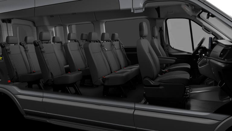 Ford Connectivity Package (1-Year Included), 15-Passenger Seats, 3.73 Axle Ratio, 3rd row seats: split-bench, 4-Wheel Disc Brakes, 4th-Row Bench Seat, 8 Speakers, ABS brakes, Air Conditioning, Apple CarPlay/Android Auto, Auto High-beam Headlights, Black High-Intensity Discharge (HID) Headlamps, Brake assist, Cloth Front Bucket Seats, Delay-off headlights, Driver door bin, Driver vanity mirror, Driver's Seat Mounted Armrest, Dual front impact airbags, Dual front side impact airbags, Electronic Stability Control, Emergency communication system: 911 Assist, Front anti-roll bar, Front Bucket Seats, Front License Plate Bracket, Front reading lights, Front wheel independent suspension, Illuminated entry, Large Center Console, Low tire pressure warning, Midship Extended Range Fuel Tank (31 Gallons), Navigation system: Connected Navigation, Occupant sensing airbag, Overhead airbag, Panic alarm, Passenger door bin, Passenger Running Board, Passenger seat mounted armrest, Passenger vanity mirror, Power door mirrors, Power steering, Power windows, Rain sensing wipers, Rear air conditioning, Rear window defroster, Remote keyless entry, Speed control, Steering wheel mounted audio controls, SYNC 4, Tachometer, Telescoping steering wheel, Tilt steering wheel, Tow/Haul Mode with Trailer Wiring Provisions, Traction control, Variably intermittent wipers, and Wheels: 16 Steel with Full Silver Cover.