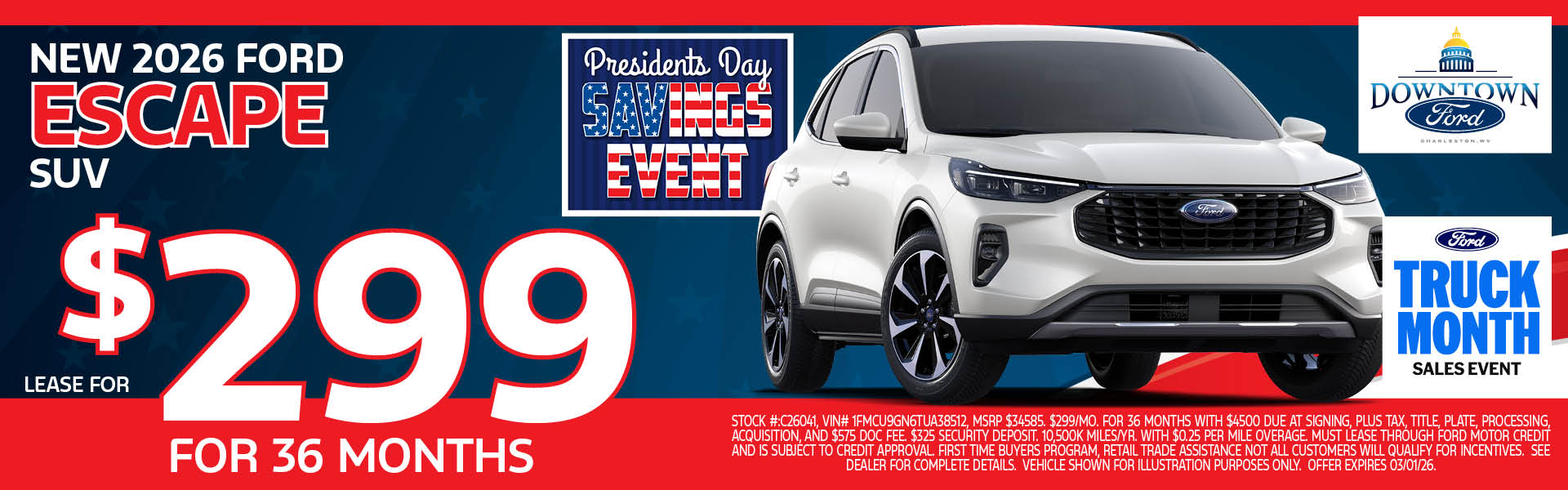 This is a state regulated fee for the processing of the paperwork in association with the purchase of a vehicle. West Virginia has one of the lowest fees in the United States. Many states allow dealers to collect hundreds more which allows out-of-state dealers to advertise prices that appear much lower than local dealers. This fee is assessed on all transactions. Some financing options will not qualify for the Internet Price. All internet vehicle prices include a $1000 trade-in assist applied to the price. This requires the purchaser to trade a qualifying vehicle to receive the discount. Pricing also includes a Finance/Lease Discount. To qualify, the purchaser must qualify for and choose a finance option arranged by Downtown Ford. Based on credit approval. Not all buyers will qualify. Not available with other offers. See dealer for details. Courtesy Vehicle Disclaimer: All Courtesy Transportation Vehicles Have More Mileage Than Normal New Retail Unit