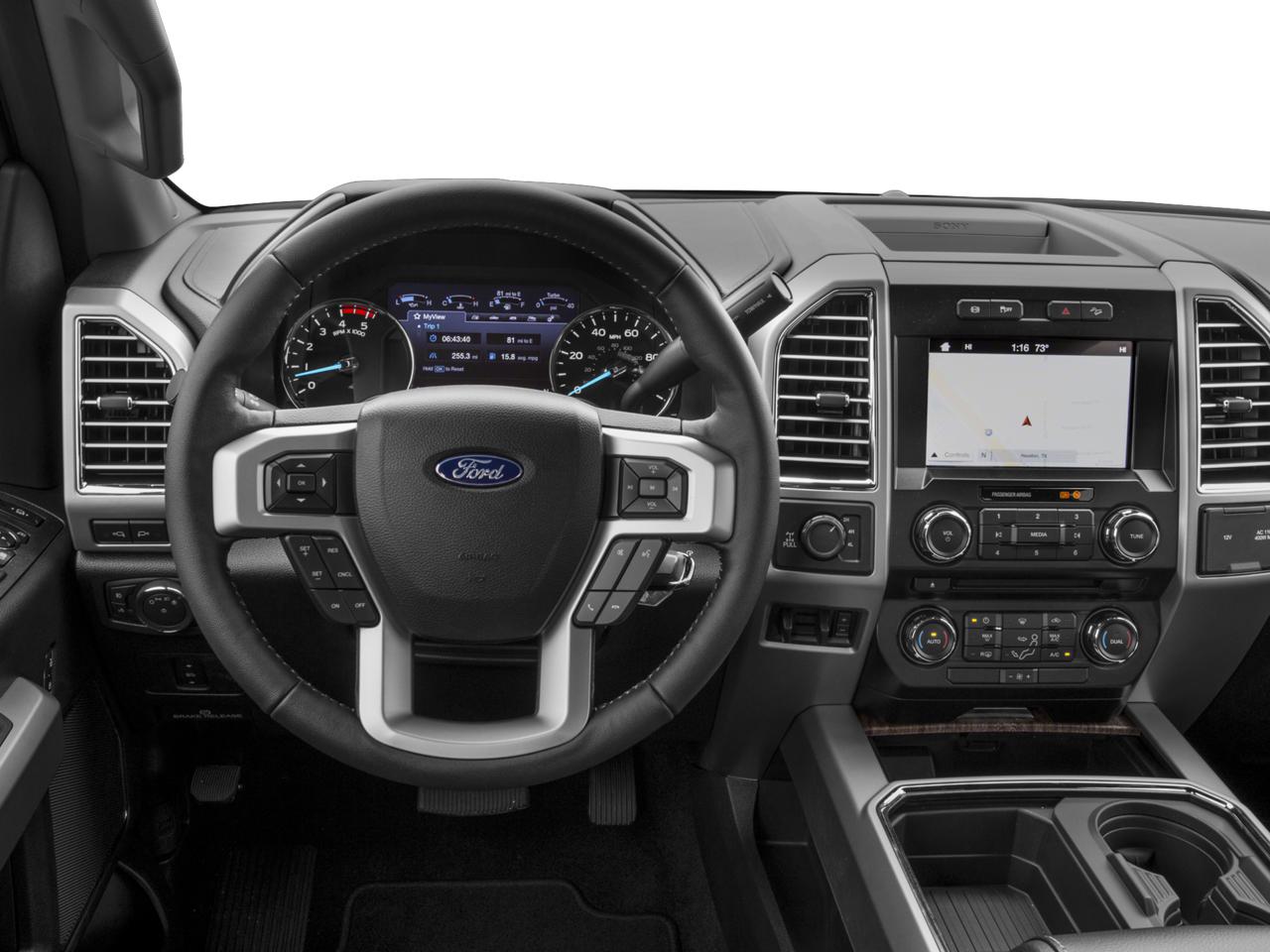 Chrome Package (6 Angular Chrome Step Bars, Body-Color Door Handles w/Chrome Insert, Chrome Exhaust Tip, Unique Chrome Mirror Caps, and Wheels: 18 Chrome PVD Aluminum), GVWR: 10,000 lb Payload Package, Lariat Ultimate Package (Ambient Lighting, Automatic High Beam, Easy Entry®/Exit Memory Driver's Seat Feature, Intelligent Access w/Push-Button Start, LED Box Lighting, Memory Power-Adjustable Pedals, Power Heated/Cooled Driver Seat w/Memory, Power Heated/Cooled Passenger Seat, Power Telescoping/Tilt Steering Wheel/Column, PowerScope Trailer Tow Mirrors w/Memory, Remote Start System, Remote Tailgate Release, Tailgate Step & Handle, Twin Panel Power Moonroof, and Voice-Activated Navigation), Order Code 608A, 10 Speakers, 110V/400W Outlet, 3.73 Axle Ratio, 4-Wheel Disc Brakes, ABS brakes, Adjustable pedals, Air Conditioning, Alloy wheels, AM/FM radio: SiriusXM, Auto-dimming Rear-View mirror, Automatic temperature control, BLIS Blind Spot Information System, Brake assist, Bumpers: chrome, CD player, Compass, Delay-off headlights, Driver door bin, Driver vanity mirror, Dual front impact airbags, Dual front side impact airbags, Electronic Stability Control, Emergency communication system: SYNC 3 911 Assist, Exterior Parking Camera Rear, Flow-Through Console, Front anti-roll bar, Front Bucket Seats, Front Center Armrest, Front dual zone A/C, Front fog lights, Front Leather Seating Surfaces 40/Console/40, Front reading lights, Fully automatic headlights, Heated door mirrors, Illuminated entry, Leather steering wheel, Low tire pressure warning, Outside temperature display, Overhead airbag, Overhead console, Panic alarm, Passenger door bin, Passenger vanity mirror, Power door mirrors, Power driver seat, Power passenger seat, Power steering, Power windows, Radio data system, Radio: Premium Sony Audio w/Single-CD/MP3 Player, Rear CHMSL Camera, Rear Parking Sensors, Rear reading lights, Rear seat center armrest, Rear step bumper, Rear window defroster, Remote keyless entry, Security system, SiriusXM Radio, Speed control, Split folding rear seat, Steering wheel mounted audio controls, SYNC 3 Communications & Entertainment System, Tachometer, Telescoping steering wheel, Tilt steering wheel, Traction control, Trip computer, Turn signal indicator mirrors, Upfitter Switches (6), Variably intermittent wipers, and Wheels: 18 Bright Machined Cast Aluminum. Recent Arrival!