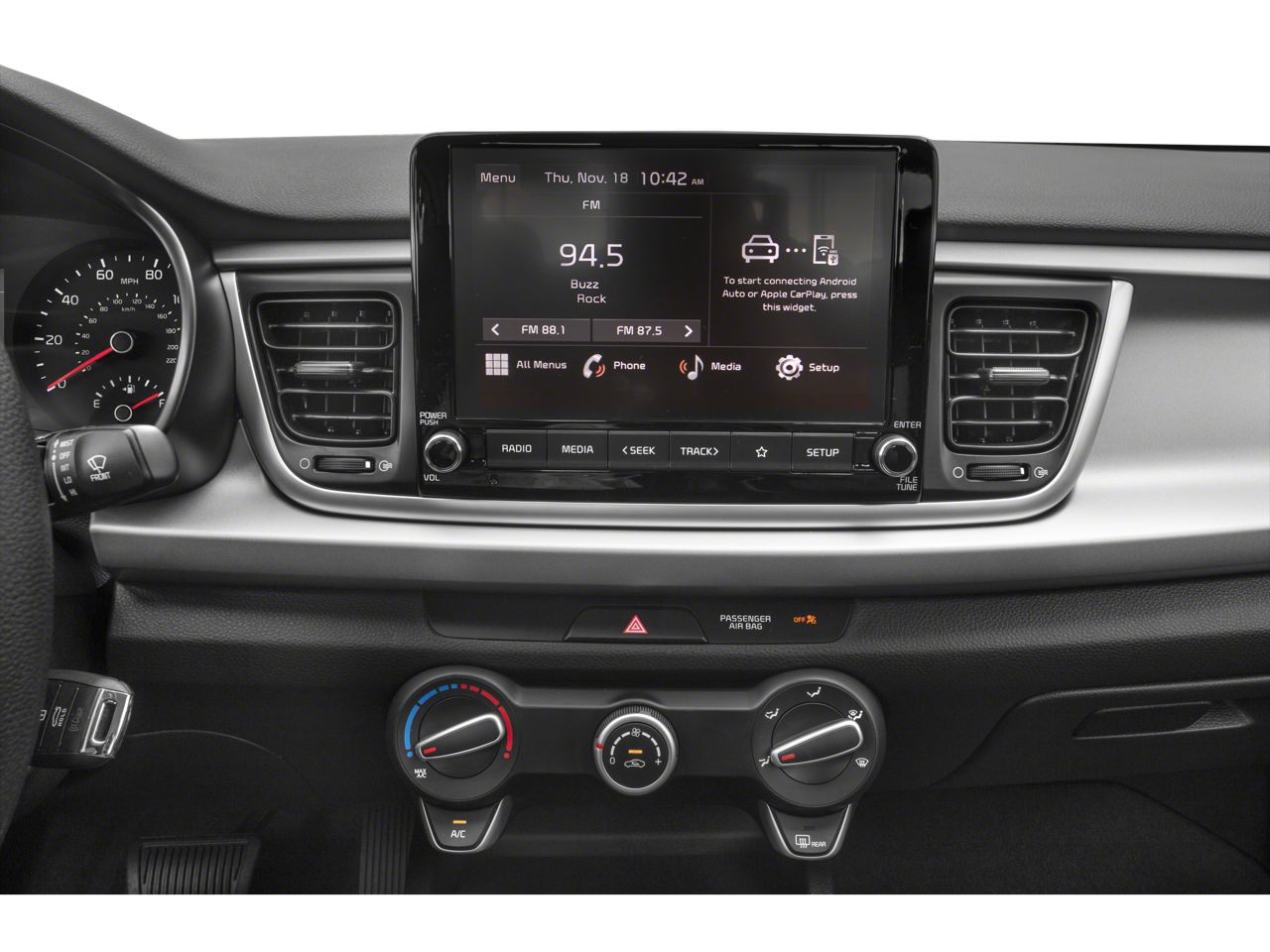 - Radio: AM/FM/MP3 Audio System -inc: 6 speakers, 8" display screen, steering wheel-mounted audio controls, USB input jack, USB charging, Bluetooth wireless technology and wireless Apple CarPlay/Android Auto