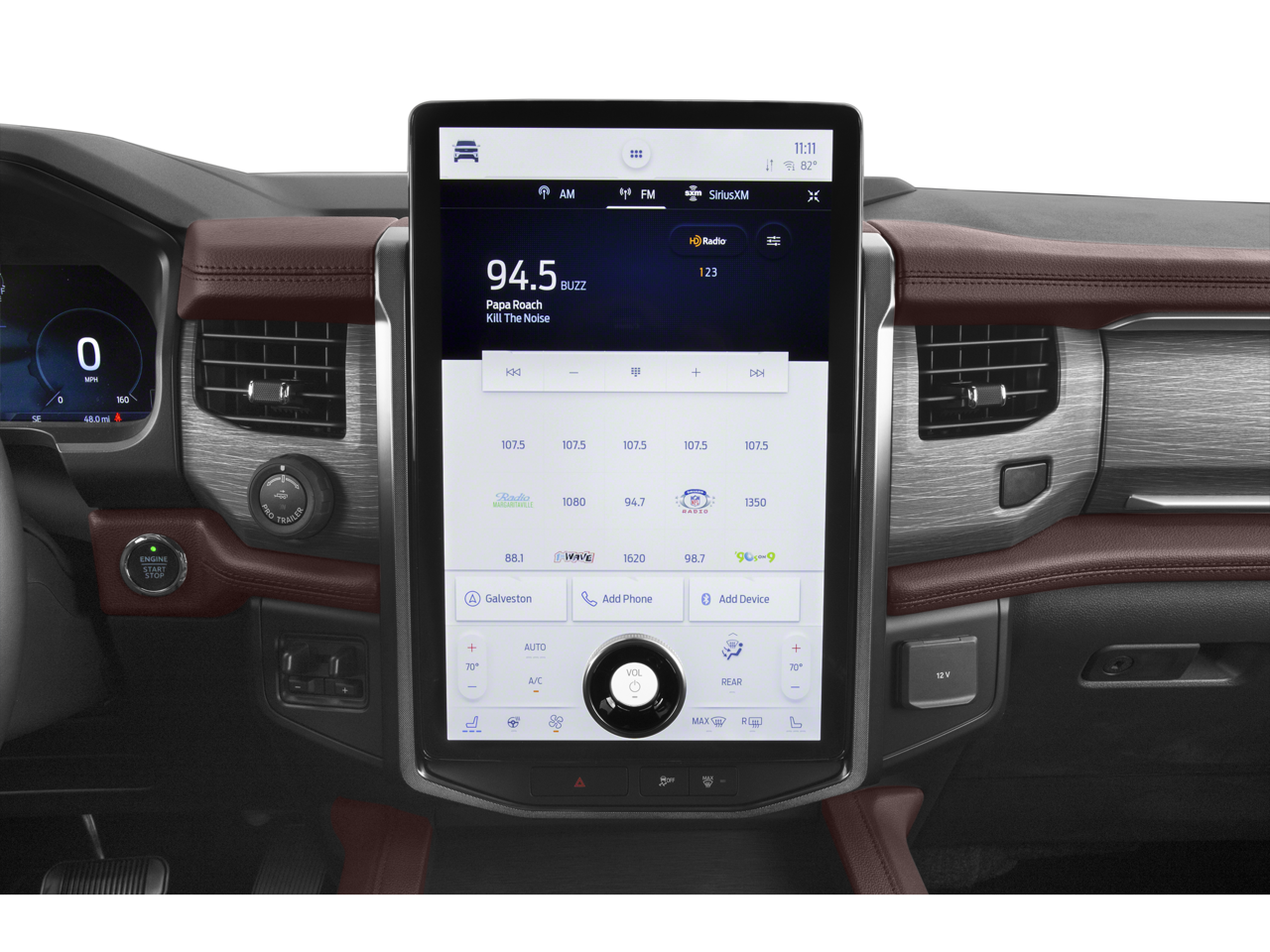Equipment Group 301A Mid Package, 12 Speakers, 2nd Row Power-Folding 40/20/40 Leather Bench Seat, 3.31 Axle Ratio, 3rd row seats: split-bench, 4-Wheel Disc Brakes, ABS brakes, Adjustable pedals, Air Conditioning, Alloy wheels, AM/FM radio: SiriusXM with 360L, Auto High-beam Headlights, Auto Start-Stop Removal (DISC), Auto-dimming door mirrors, Auto-dimming Rear-View mirror, Automatic temperature control, Brake assist, Bumpers: body-color, Compass, Delay-off headlights, Driver door bin, Driver vanity mirror, Dual front impact airbags, Dual front side impact airbags, Electronic Stability Control, Emergency communication system: SYNC 4 911 Assist, Exterior Parking Camera Rear, Four wheel independent suspension, Front anti-roll bar, Front Bucket Seats, Front Center Armrest, Front dual zone A/C, Front fog lights, Front reading lights, Fully automatic headlights, Garage door transmitter, Heated & Ventilated Leather Front Captain's Chairs, Heated door mirrors, Heated front seats, Heated rear seats, Heated steering wheel, Illuminated entry, Leather steering wheel, Low tire pressure warning, Memory seat, Navigation system: Connected Navigation, Occupant sensing airbag, Outside temperature display, Overhead airbag, Overhead console, Panic alarm, Passenger door bin, Passenger vanity mirror, Pedal memory, Power door mirrors, Power driver seat, Power Liftgate, Power moonroof, Power passenger seat, Power steering, Power windows, Radio data system, Radio: B&O Sound System by Bang & Olufsen, Rain sensing wipers, Rear air conditioning, Rear anti-roll bar, Rear reading lights, Rear window defroster, Rear window wiper, Reclining 3rd row seat, Remote keyless entry, Second Row Power Windows Removal, Security system, SiriusXM w/360L, Speed control, Speed-sensing steering, Speed-Sensitive Wipers, Split folding rear seat, Spoiler, Steering wheel memory, Steering wheel mounted audio controls, SYNC 4 w/Enhanced Voice Recognition, Tachometer, Telescoping steering wheel, Tilt steering wheel, Traction control, Trip computer, Turn signal indicator mirrors, Variably intermittent wipers, Ventilated front seats, Voltmeter, and Wheels: 20 Bright Machined Aluminum.