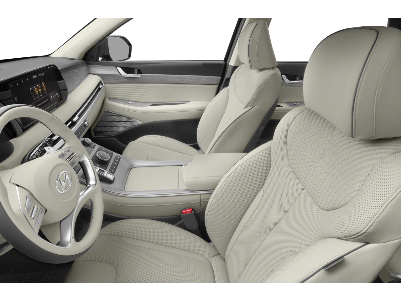Option Group 01, 12 Speakers, 3.648 Axle Ratio, 3rd row seats: split-bench, 4-Wheel Disc Brakes, ABS brakes, Air Conditioning, Alloy wheels, AM/FM radio: SiriusXM, Apple CarPlay & Android Auto, Auto High-beam Headlights, Auto-dimming door mirrors, Auto-dimming Rear-View mirror, Auto-leveling suspension, Automatic temperature control, Brake assist, Bumpers: body-color, Cargo Net, Cargo Tray, Carpeted Floor Mats, Compass, Delay-off headlights, Driver door bin, Driver vanity mirror, Dual front impact airbags, Dual front side impact airbags, Electronic Stability Control, Emergency communication system: Blue Link Connected Car Service (3-year complimentary subscription), Exterior Parking Camera Rear, First Aid Kit, Four wheel independent suspension, Front anti-roll bar, Front Bucket Seats, Front Center Armrest, Front dual zone A/C, Front reading lights, Fully automatic headlights, Garage door transmitter: HomeLink, harman/kardon® Speakers, Heads-Up Display, Heated & Ventilated Front Bucket Seats, Heated door mirrors, Heated front seats, Heated rear seats, Heated steering wheel, Illuminated entry, Knee airbag, Low tire pressure warning, Memory seat, Navigation System, Occupant sensing airbag, Outside temperature display, Overhead airbag, Overhead console, Panic alarm, Passenger door bin, Passenger vanity mirror, Power door mirrors, Power driver seat, Power Liftgate, Power moonroof, Power passenger seat, Power steering, Power windows, Premium Nappa Leather Seat Trim, Radio data system, Radio: AM/FM/MP3 Premium Audio System, Rain sensing wipers, Rear air conditioning, Rear anti-roll bar, Rear audio controls, Rear reading lights, Rear side impact airbag, Rear window defroster, Rear window wiper, Reclining 3rd row seat, Remote keyless entry, Security system, Speed control, Speed-sensing steering, Split folding rear seat, Spoiler, Steering wheel mounted audio controls, Tachometer, Telescoping steering wheel, Tilt steering wheel, Traction control, Trip computer, Turn signal indicator mirrors, Variably intermittent wipers, Ventilated front seats, Ventilated rear seats, and Wheels: 20 x 7.5J Calligraphy Exclusive Alloy. Recent Arrival!