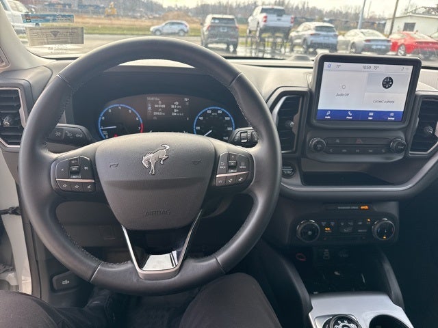 Powered by a turbocharged 1.5L EcoBoost engine paired with an 8-Speed Automatic and 4WD. Equipped with the Convenience Package featuring heated front seats, LED fog lamps, rear parking sensors, premium wrapped steering wheel, wireless charging pad, and universal garage door opener. Comfortable interior with ebony cloth seating, SYNC 3, SiriusXM capability, keyless entry, and steering wheel mounted audio controls. Designed for adventure with 17 carbonized gray high gloss aluminum wheels, roof rails, and rugged Bronco Sport styling. A versatile SUV ready for daily driving or weekend exploration.